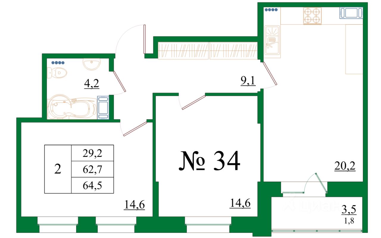 Просторные комнаты с возможностью разделения на зоны, встроенные гардеробные, евро-планировки и кухни-гостиные до 20 м2.