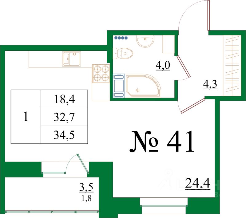Продаётся студия в строящемся доме (Корпус 6), срок сдачи: II-кв. 2026, общей площадью 34.5 кв.м., на 4 этаже.
