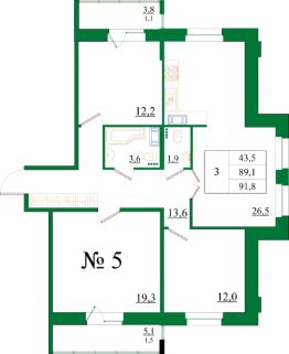 Продаётся 3-комнатная квартира в строящемся доме (Корпус 6), срок сдачи: IV-кв. 2025, общей площадью 91.7 кв.м., на 3 этаже.
