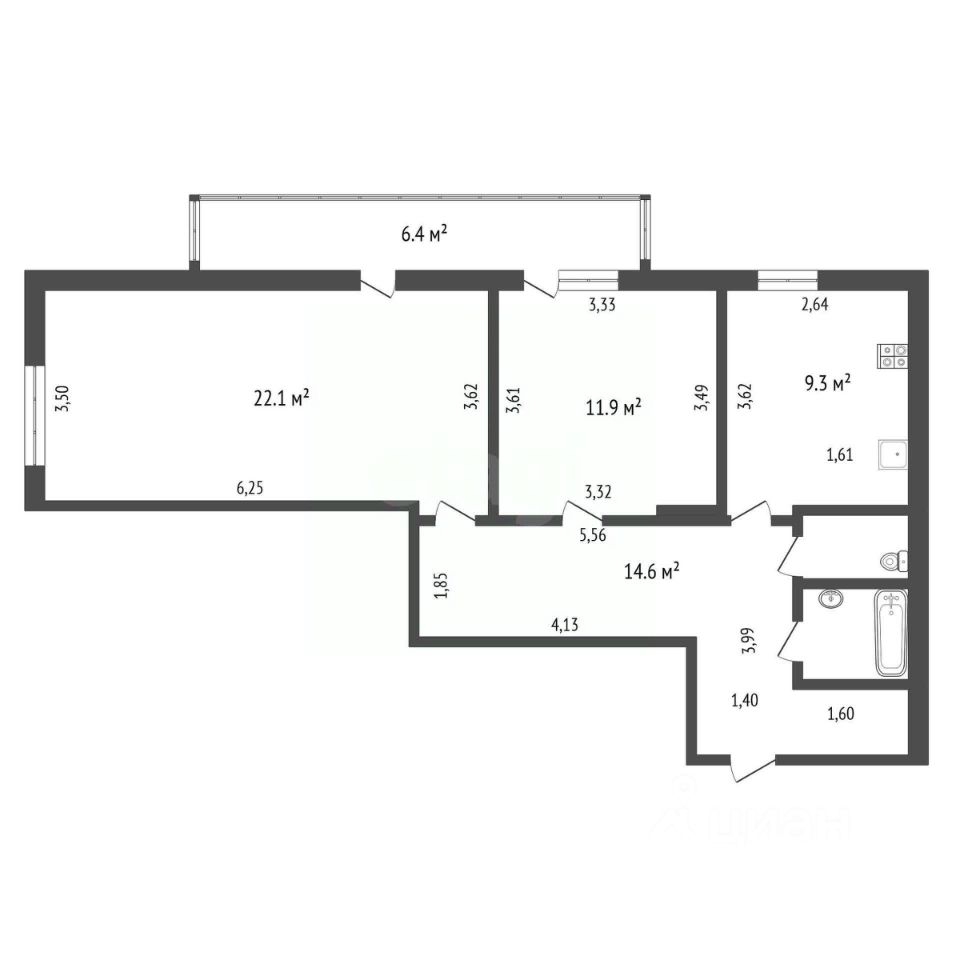 Планировка: Удобная. Большая гостиная и спальня выходят на единый балкон.