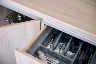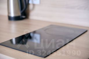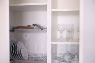 • Установлен кухонный гарнитур, электрическая панель, холодильник, микроволновка, чайник, посуда