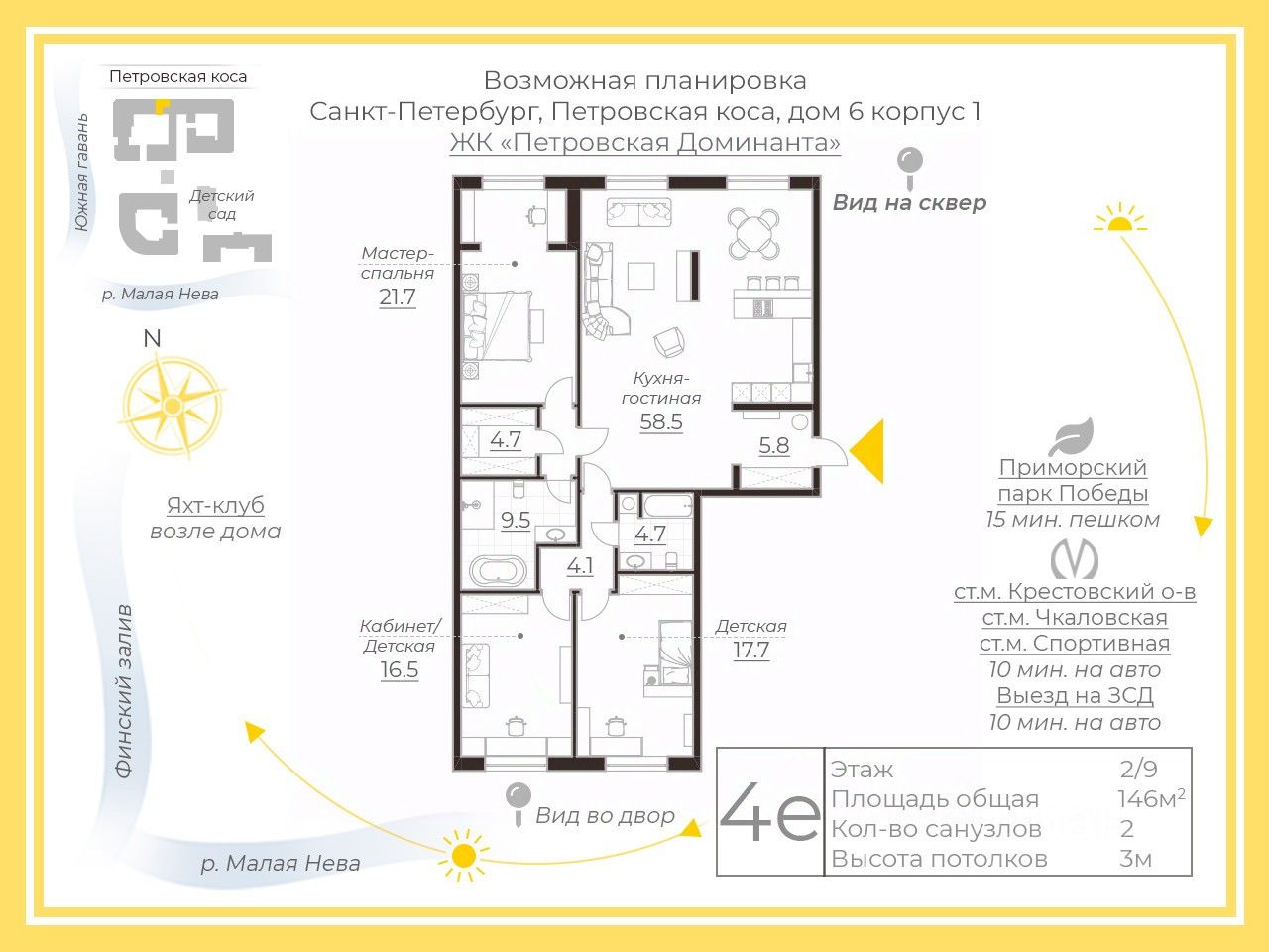 Арт. 126748082 Уникальная семейная квартира с тремя спальнями, продуманной эргономикой и зонированием. Второй такой нет на всём Петровском острове!