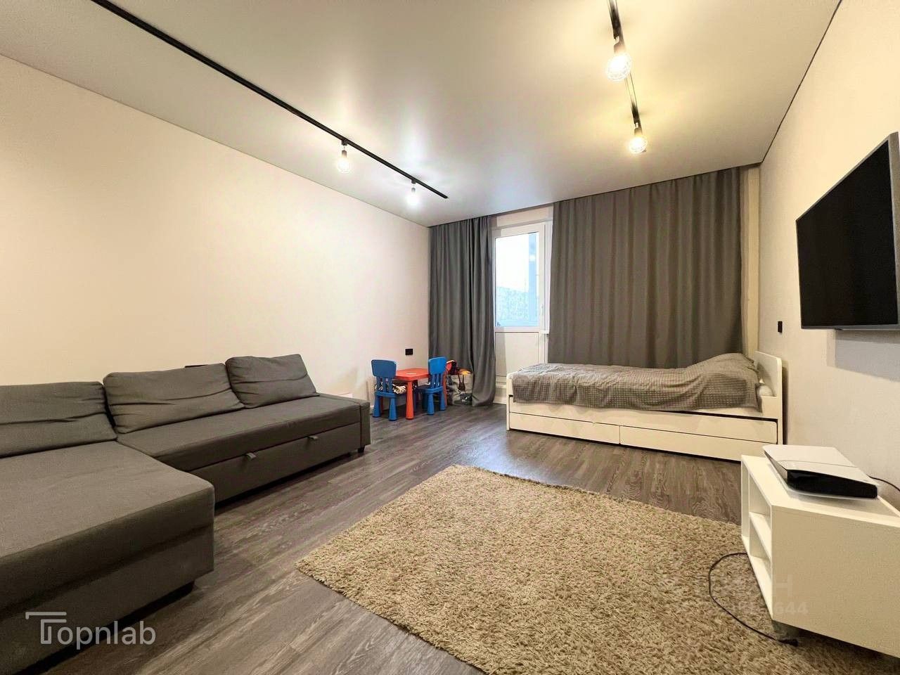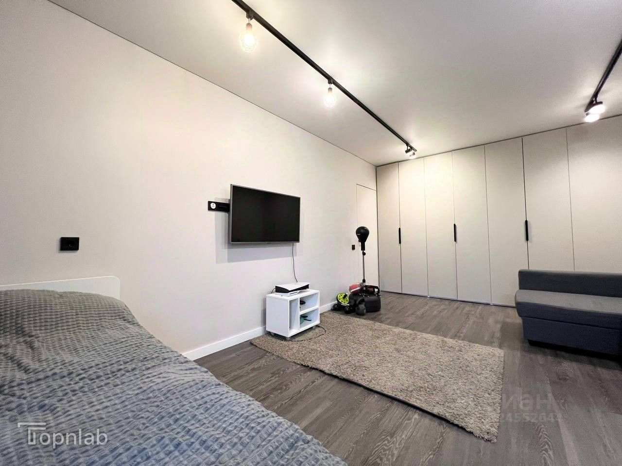 Много пространства для размещения вещей — большой шкаф во всю стену в комнате. В прихожей также есть место для хранения вещей.