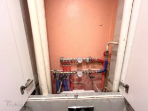 Сделан качественный евроремонт: произведена замена электрики, водоснабжения, отопительных радиаторов; установлен натяжной потолок и освещение. На полу в кухне и гостиной — кварцвинил, в санузлах — плитка. В кухонном гарнитуре установлены посудомоечная машина, духовой шкаф, микроволновая печь, вытяжка и холодильник (отдельно).