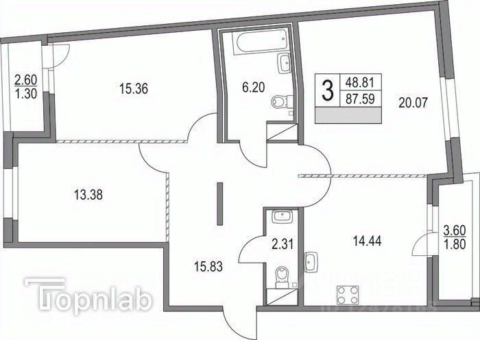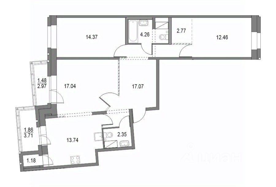Арт. 123139424 В продаже просторная трёхкомнатная квартира в жилом комплексе комфорт-класса "Приморский квартал",