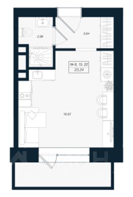 Студия с удобной планировкой - 24,62 м2 и балконом в жк "Феникс Рощино".