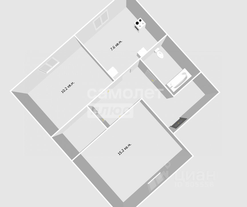 Кухня 7,6 кв.м. Сан.узел совмещенный.