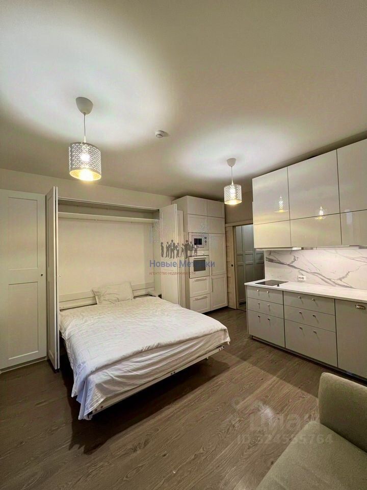 Особенностью данной студии является умная подъемная кровать-трансформер, которая не только экономит пространство, но и добавляет комфорт в повседневную жизнь. Приезжайте, и вы сразу же погрузитесь в атмосферу уюта и стиля — квартира полностью готова к жизни, вся техника остается!