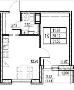 Просторная кухня 12,7 м² позволит разместить дополнительный диван и создать уютное пространство кухня-гостиная.