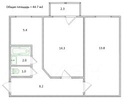 Вашему вниманию 2-комнатная квартира общей площадью 44.7 м2 + балкон 2.3 м2 в самом центре города Колпино. Прописка городская.