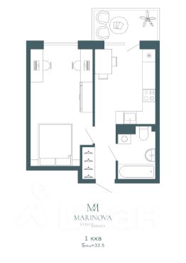 Уютная 1-комнатная квартира площадью 33,5 м.