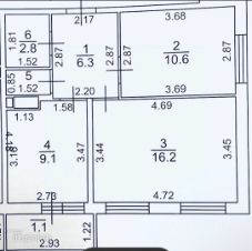 Санузел раздельный- 1,3 м2, ванная комната- 2,8 м2 с полноценной ванной и со стиральной машиной!
