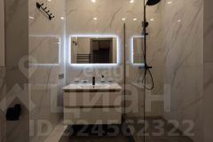 — Большая раковина, зеркало с подсветкой, современная душевая кабина