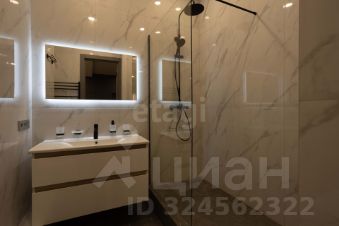 — Большая раковина, зеркало с подсветкой, современная душевая кабина (сантехника AM PM)