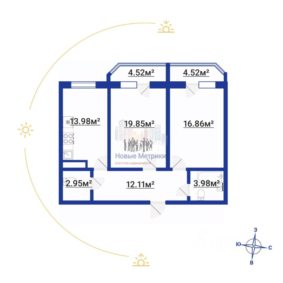Много света, Два больших застекленных балкона.