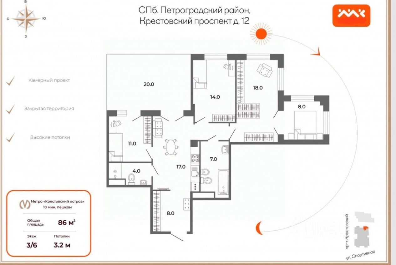 Крестовский остров - лучший элитный район города с шикарной инфраструктурой- все самое лучшее здесь.