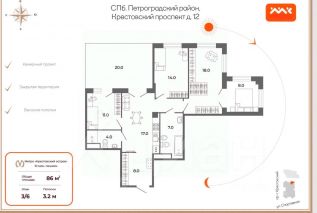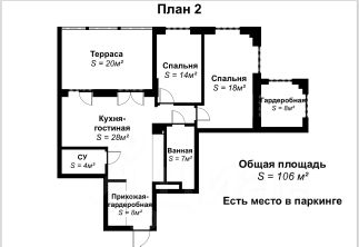 Приятный бонус - у квартиры есть крытая уединенная терасса 20 м2. Общая площадь с террасой 106 м2.
