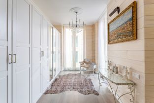 Стены, отделанные натуральной дорогостоящей лиственницей, соответствуют современной эко тенденции .