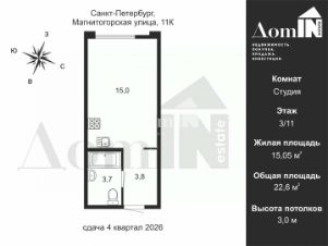 Арт. 127023568 Предлагается к продаже видовая студия в ЖК бизнес-класса "Alpen", по самой выгодной цене.