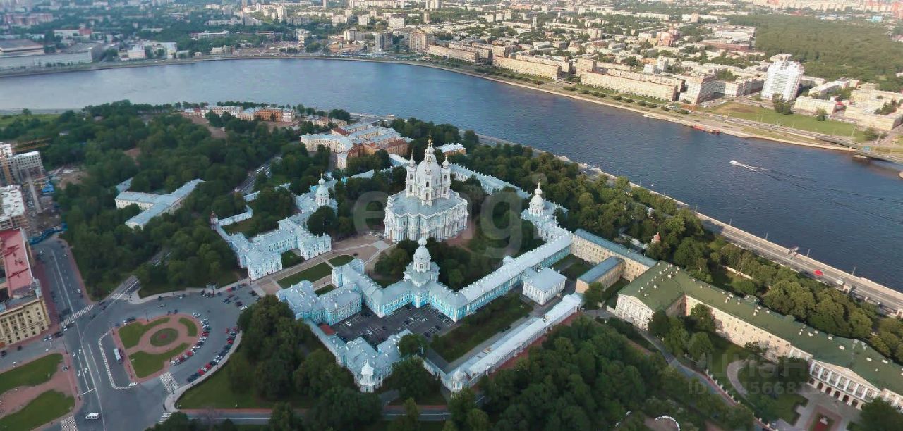 - Рядом Набережная излучины Невы с видом на "ансабль Смольного монастыря", "Сад Нева", "Георгиевский сквер", "Полюстровский парк"