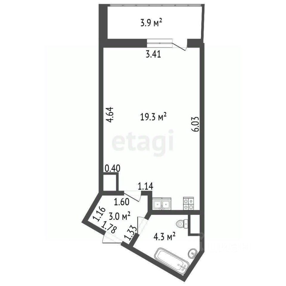 Общая площадь квартиры составляет 25.1 кв. м, жилая площадь — 19.3кв. м. Квартира расположена на последнем, 25-м этаже, что гарантирует потрясающие виды из окон. Высокие потолки в 2.8 метра придают пространству дополнительный объем.