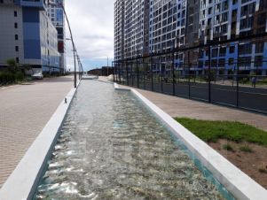 Дворовая территория и инфраструктура: двор закрытый, охраняемый, ведется видеонаблюдение. На территории ЖК имеются современные детская, спортивная и баскетбольная площадки. Двор чистый, ухоженный, с зелеными насаждениями, газонами и декоративными водоемами. Так же на территории имеются беседки-гриль, где можно готовить блюда на открытом огне. В радиусе 200 метров расположены все необходимые продуктовые магазины (Магнит, Пятерочка, Семишагофф, ВкусВилл), аптеки, пункты выдачи, салоны красоты, а так же детские сады и школы.