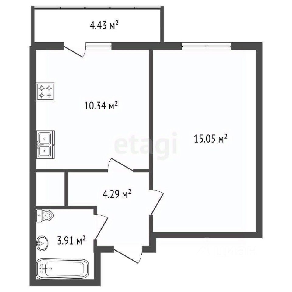 Площадь: 33 м² + застекленная лоджия 4.43 м².