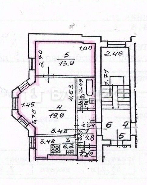 Площадь смежных комнат: 13,9 кв. м и 19,9 кв. м.