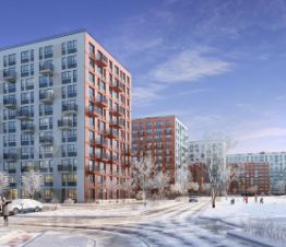 Корпуса высотой 11 этажей с французскими и панорамными балконами отделаны штукатуркой и облицовочным кирпичом. Вдохновение для палитры нам подарили оттенки рассветного неба: терракотовый, персиковый, песочный.