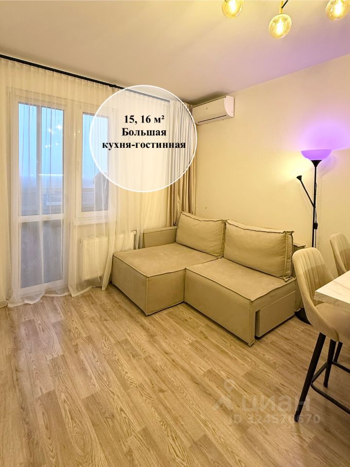 Кухня-гостиная 15,16 м² организована для приятного времени за приготовлением блюд, отдыхом и встречей с родственниками и друзьями и даже работой/учебой: