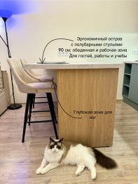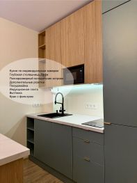 • Кухня на заказ с глубокой столешницей (70 см) и островом (90*160 см) - большая комфортная рабочая зона.