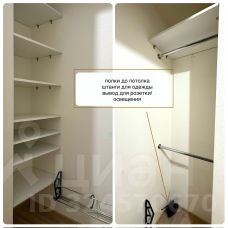 • Мини-гардеробная с полками до потолка и двумя штангами.