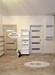 • Дополнительные шкафчики на стене и скрытая книжная полка за дверью.