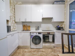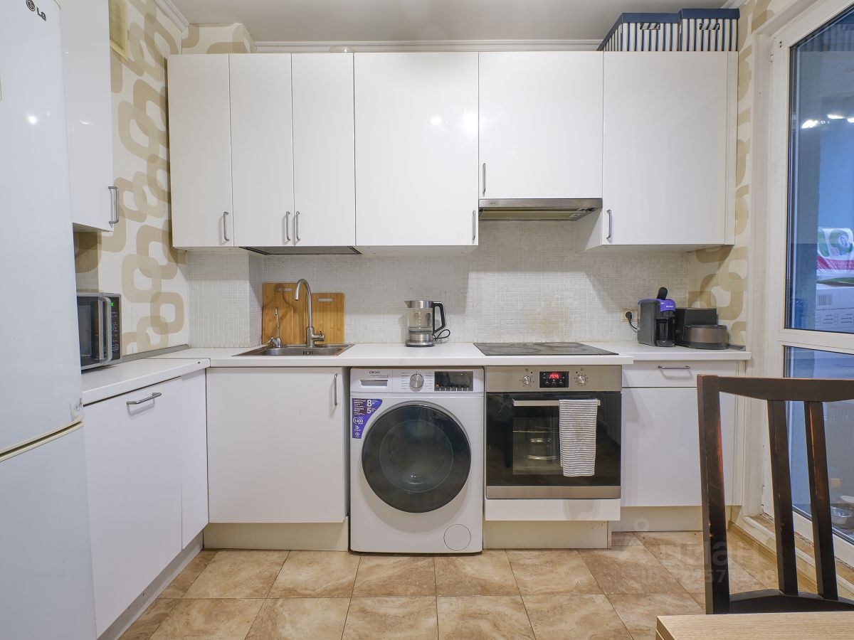 Передается с кухней и бытовой техникой (холодильник, ПММ, стиральная машина).