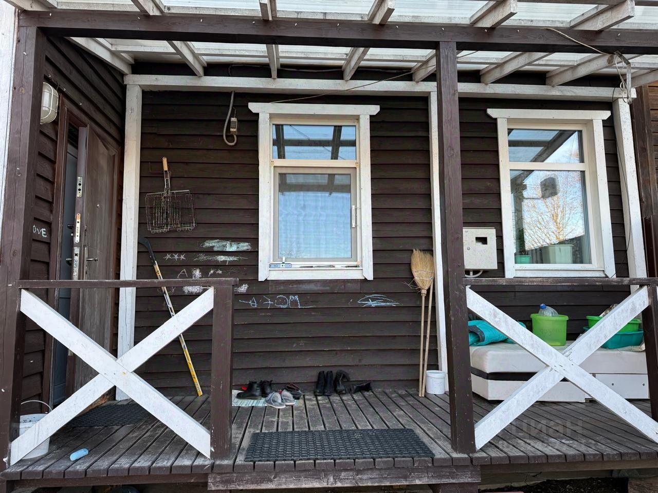 Дом из бревна, сделана пристройка. Отопление печное . Вода - насосная станция из собственного колодца. Личное элктричество на 10 КВт. Переливной септик .Прописка.