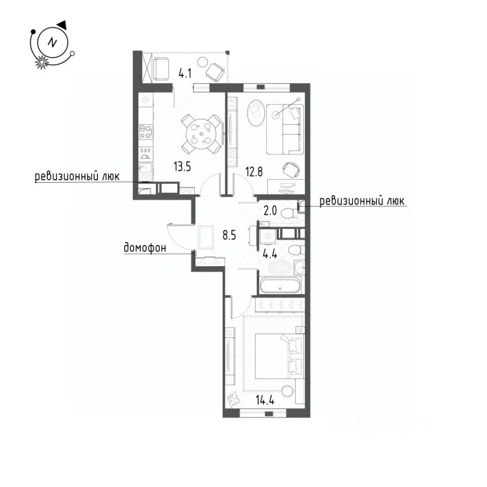 13,4 м²