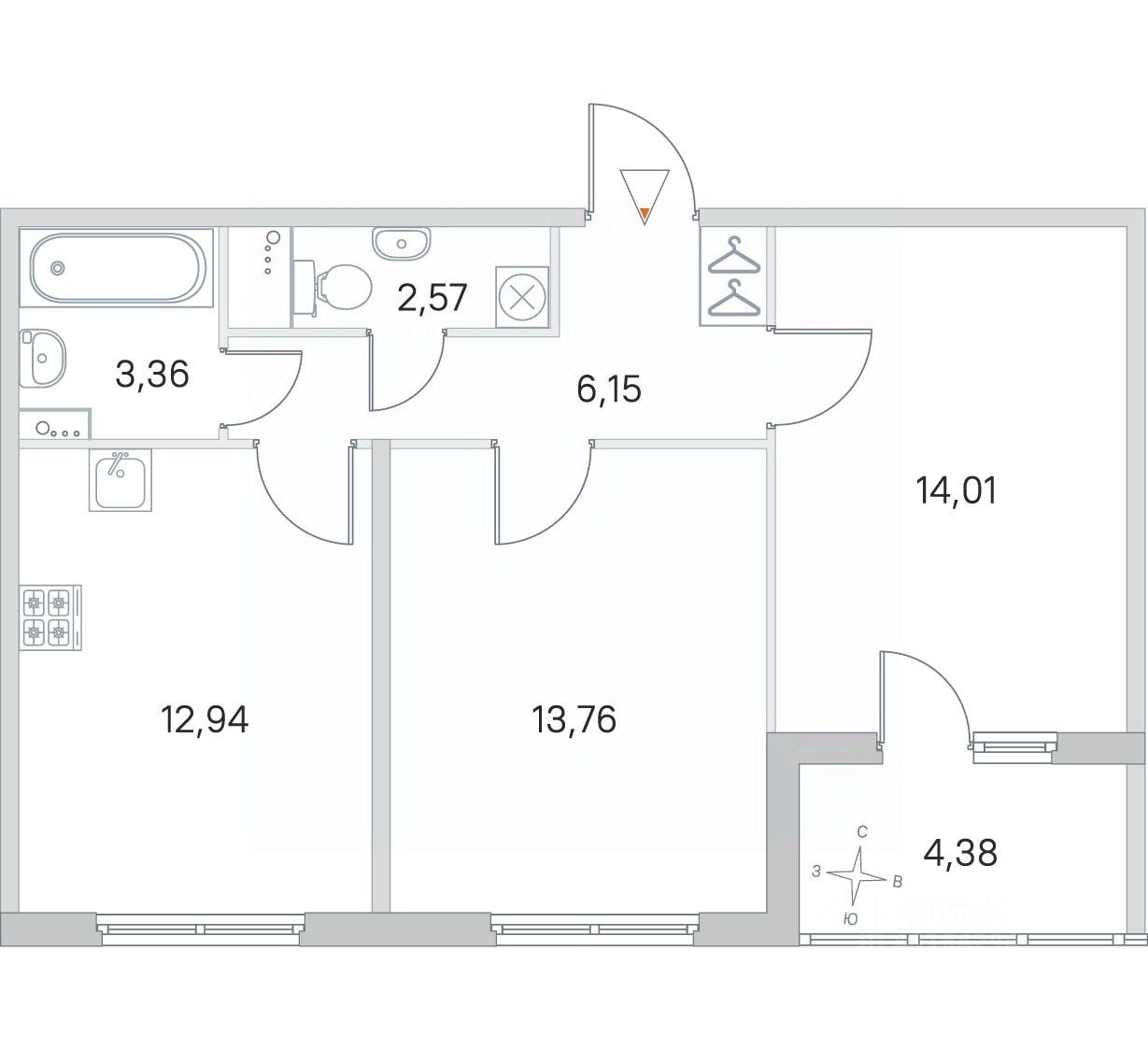 Общая площадь52,79 м²