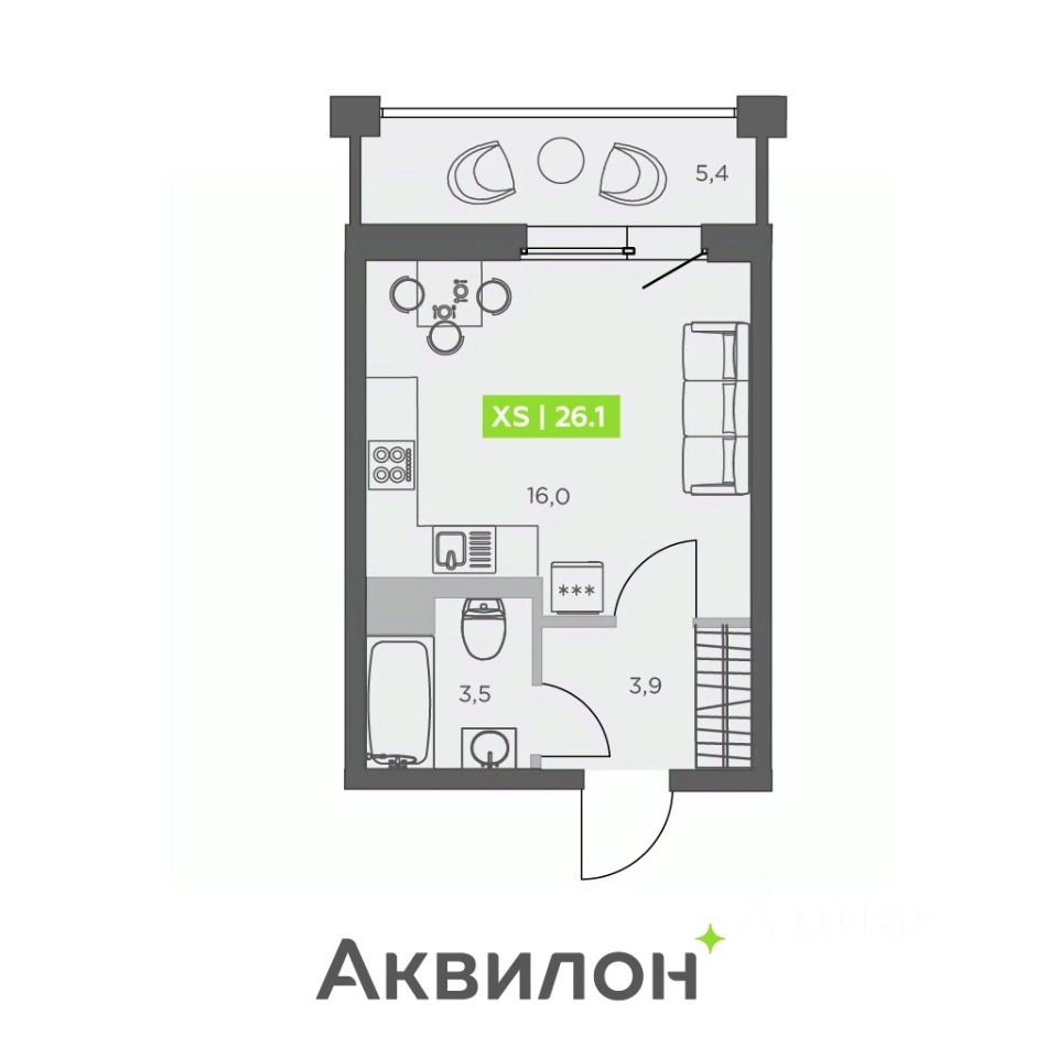 Общая площадь26,1 м²