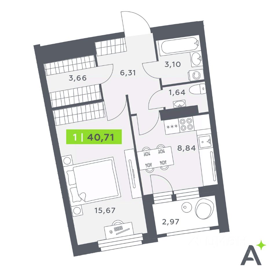 Общая площадь40,71 м²