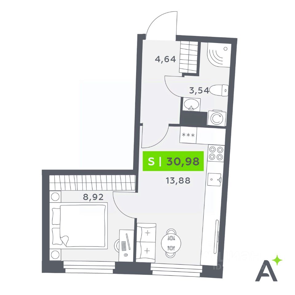 Общая площадь30,98 м²