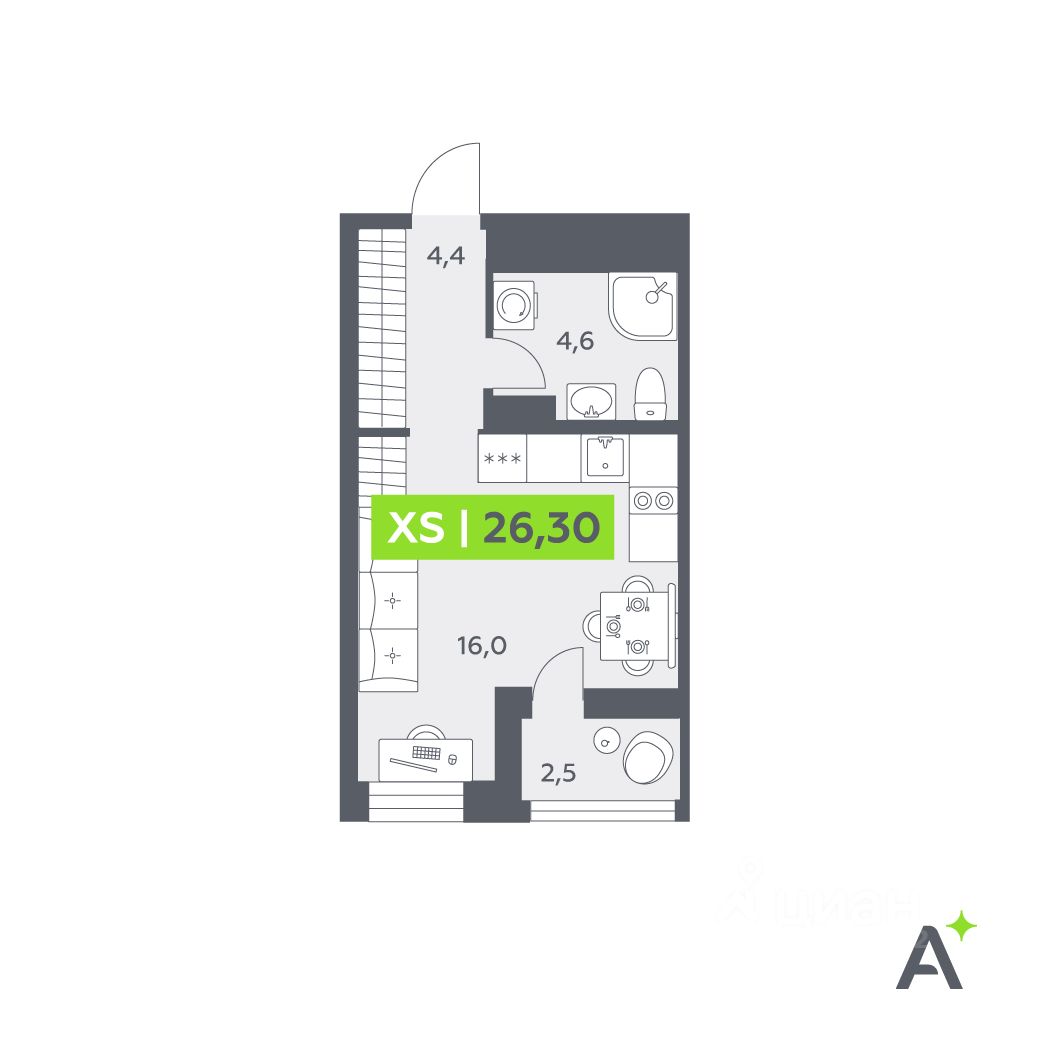 Общая площадь26,3 м²