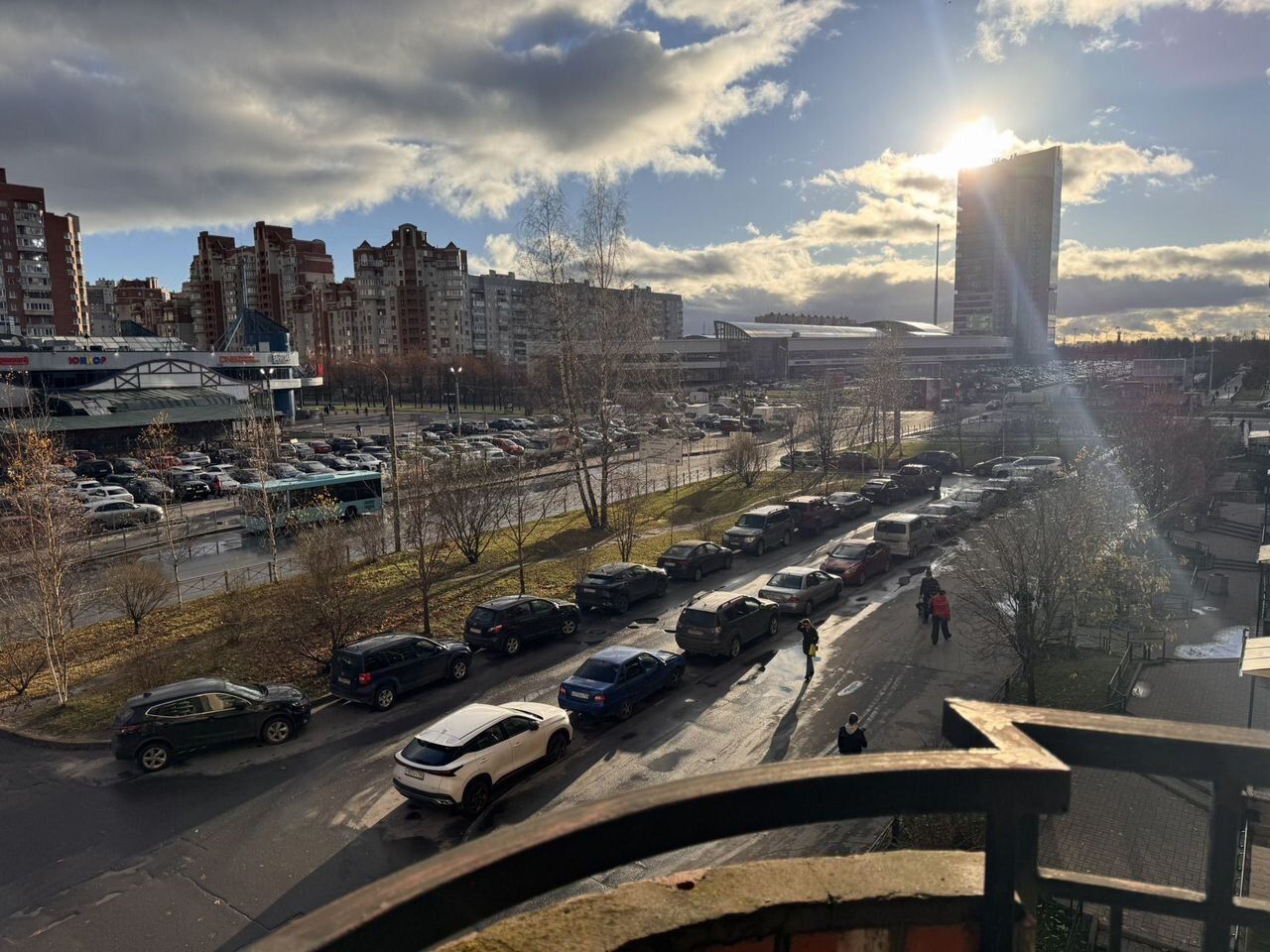 ФРАНЦУЗСКИЙ БАЛКОН с ВИДОМ: Панорамное окно выходит на просторную улицу Оптиков и ТЦ "Меркурий". Солнечная сторона! А с балкона открывается вид на Парк 300-летия и Финский залив — редкая находка!