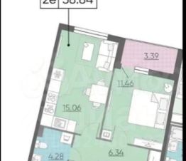 Общая площадь квартиры, включая застекленную лоджию 38.84 кв.м.