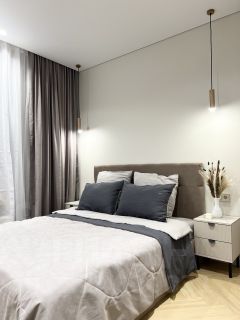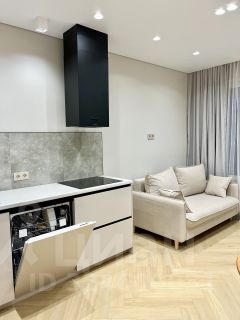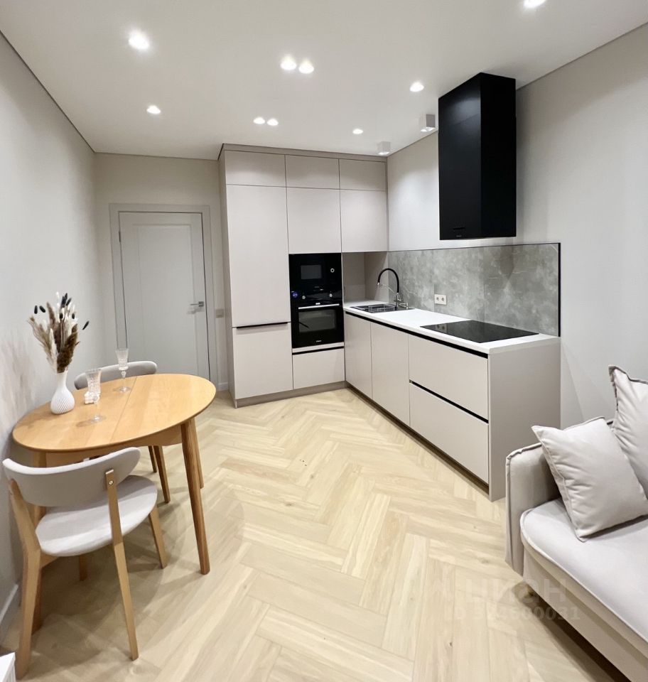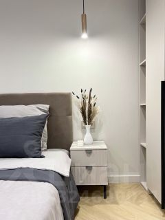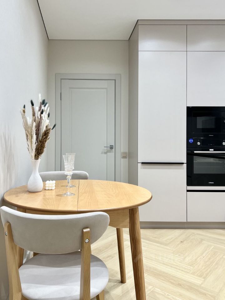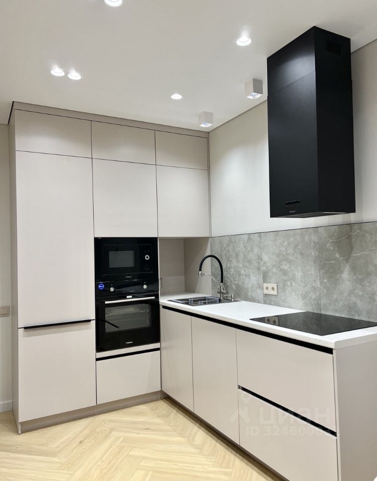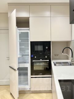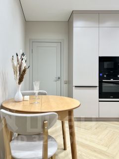 Кухонный гарнитур на заказ со встроенным холодильником,вместительной посудомоечной машиной 60 см, духовым шкафом, индукционной варочной поверхностью , современной цилиндрической вытяжкой. Также в кухне-гостиной установлен раскладывающийся диван 220 см в зоне ТВ. Несколько вариантов освещения . Из кухни гостиной выход на лоджию, где обустроена подсветка по периметру и кресло-гамак, можно уютно проводить время вечерами. Вид во двор и боковой вид на мост и залив! В спальне 2 м шкаф