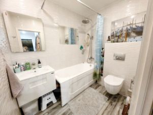 О КВАРТИРЕ: Уютная современная квартира с качественным ремонтом. Кухня-гостиная с панорамным остекленением ,что ещё больше расширяет пространство. На полу кухни, прихожей, санузла кварцвинил. Под ним проложена хвойная подложка. На полу в детской ламинат с подогревом, подогрев полов так же в санузле. В спальне на полу и одной из стен, граничащей с соседями, пробковое покрытие. Это дополнительная долговечность, экологичность и звукоизоляция. Материал гипоаллергенен, устойчив к деформациям и износостойкий. Обои флизелин под покраску, потолки натяжные.