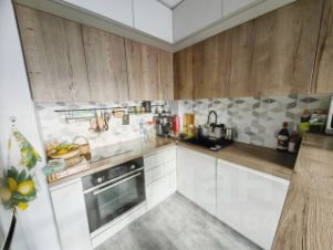 Кухонный гарнитур Эггер. Фартук-плитка, вытяжка встроенная. В квартире остаётся : кухонный гарнитур, индукционная плита, шкафы и комоды в прихожей. Духовой шкаф Сименс, посудомойка Электролюкс и остальная мебель-по договорённости. Панорамное остекленение уже согласовано с управляющей компанией.