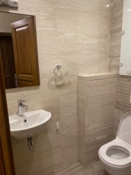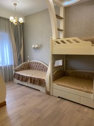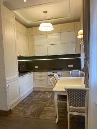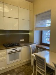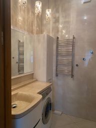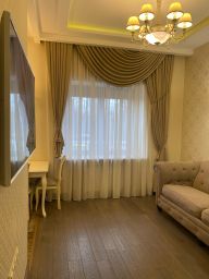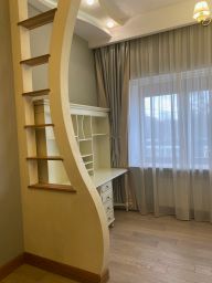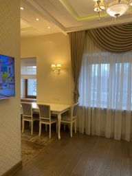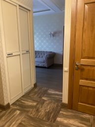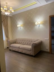 В квартире сделан качественный евроремонт с заменой внутренней штукатурки, полов и потолка. Дубовые двери (высота 2.20), дубовые подоконники и плинтусы. Деревянные окна, форточки с шумоподавлением. Пол паркетный. Двухуровневые потолки с закарнизной подсветкой. Раздельный санузел. Большая (180 см) чугунная ванна Jaсob Delafon, тропический душ. Кухня со встроенной немецкой техникой и теплым полом.