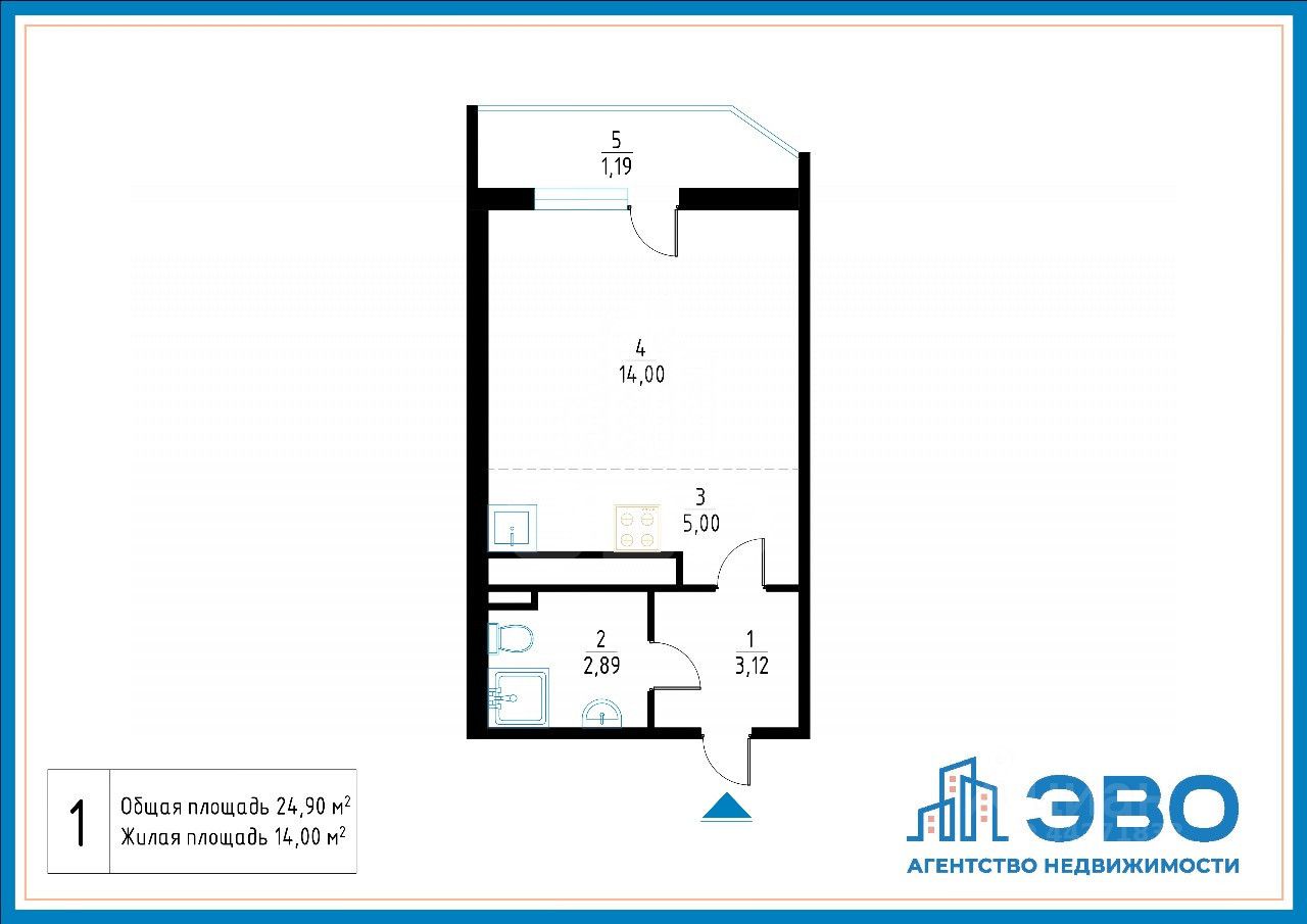 Арт. 127169410 В прямой продаже светлая, уютная квартира-студия в ЖК "GreenЛандия".