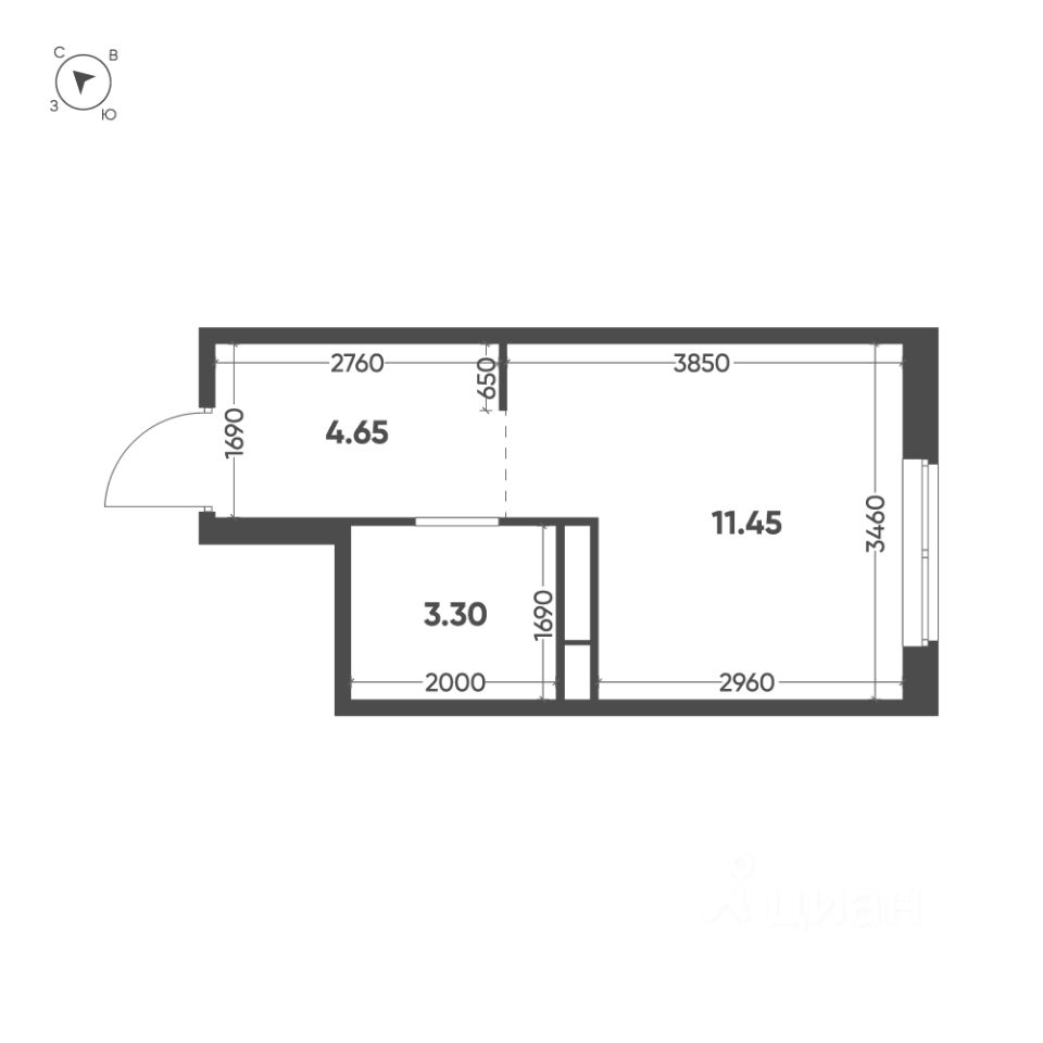 Общая площадь квартиры — 19.4 кв. м, этаж 13 из 16.
