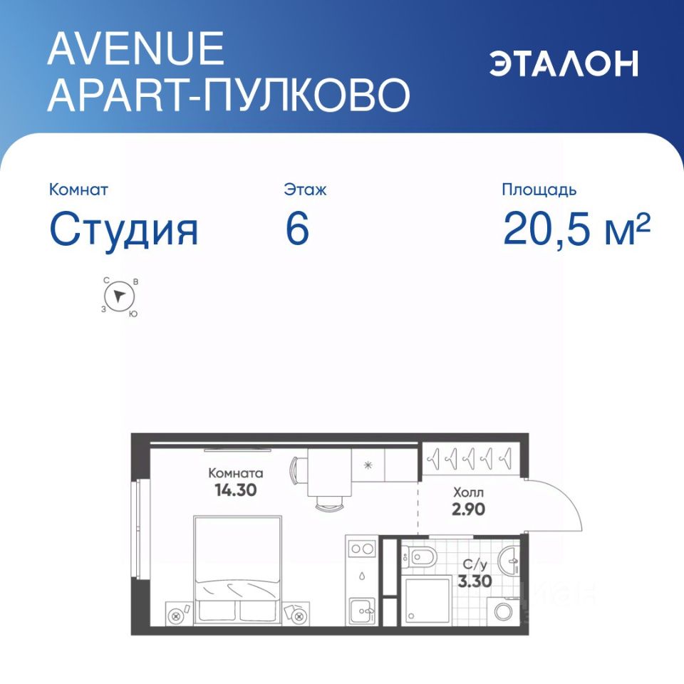Продается апартаменты-студия с чистовой отделкой в ЖК AVENUE-APART Пулково.